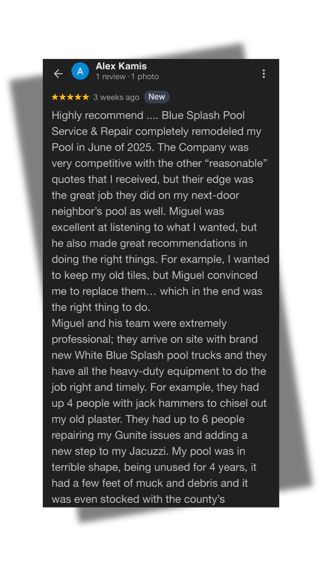 Recommended by your neighbors for professionalism, honesty, and beautiful results. From urgent leak fixes to full pool makeovers, we do it all — on time and done right.
